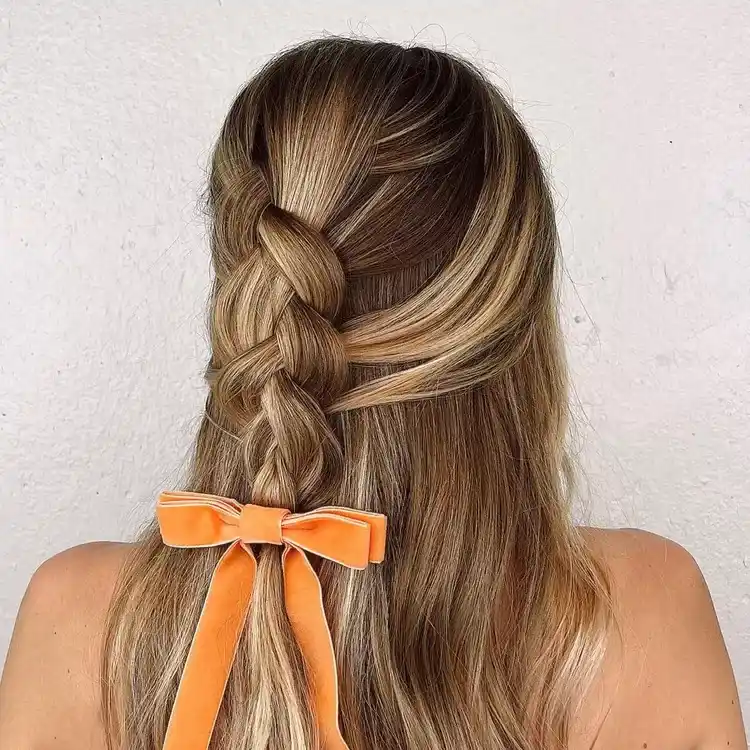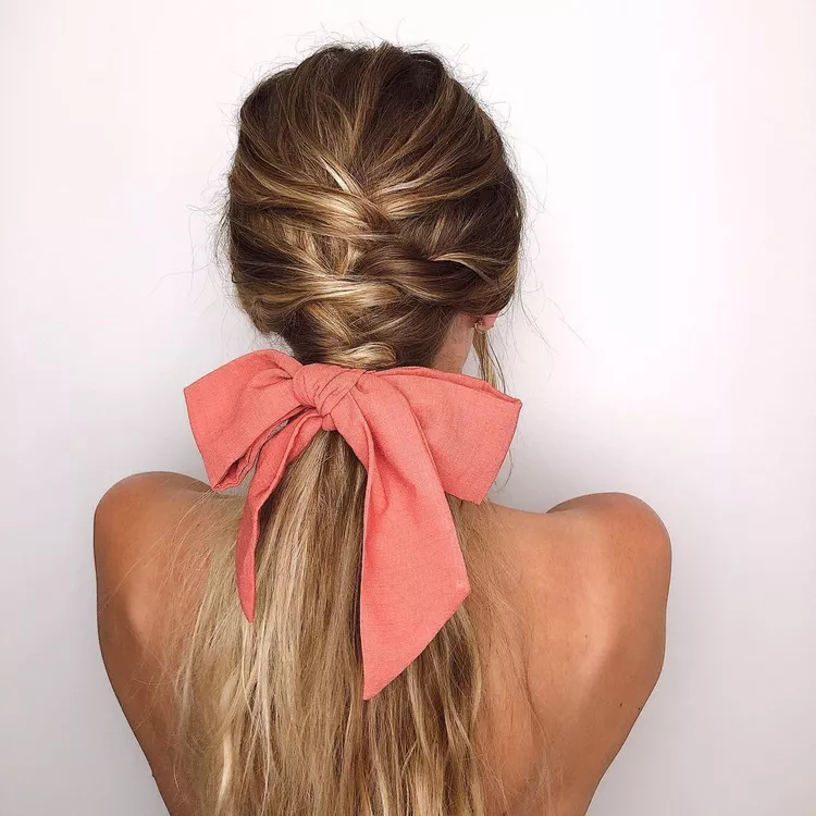 This perfectly undone ponytail gives long, tousled hair its moment to shine. Start by taking the top half of your hair and loosely braiding it before securing it into a ponytail. Let the rest of your strands fall naturally for a soft, romantic finish that feels effortless.