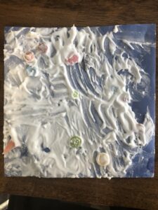 Supplies: Shaving cream, glue, construction paper, buttons (optional), paintbrush.