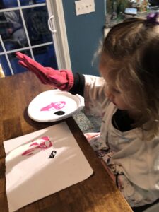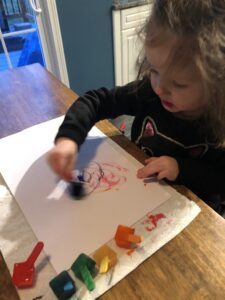 Talk about how snow melts and spark your child’s imagination by asking how their snowman melted. My daughter had so much fun with this one and ended up using her hands and an extra piece of paper. It kept her entertained for quite a while.