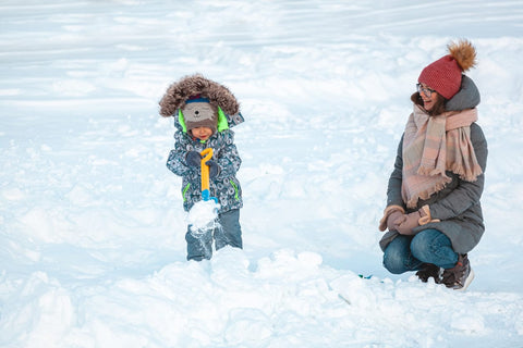 Choose a safe, open space away from people and objects. Show your child how to make snowballs or prepare a pile of them together. This process alone can be part of the fun, so take your time.