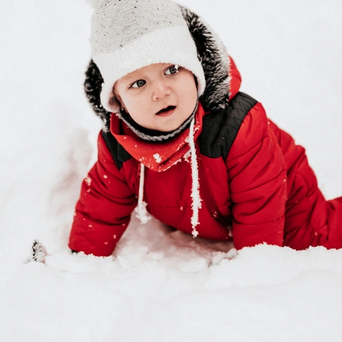 Get a child-sized shovel and find a safe spot where your little one can shovel snow. Show them how to scoop and carry the snow to a chosen area. Once they’ve made a pile, let the fun begin.