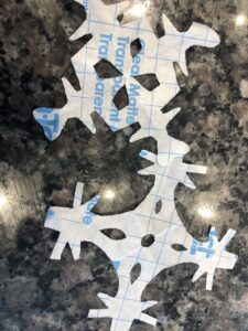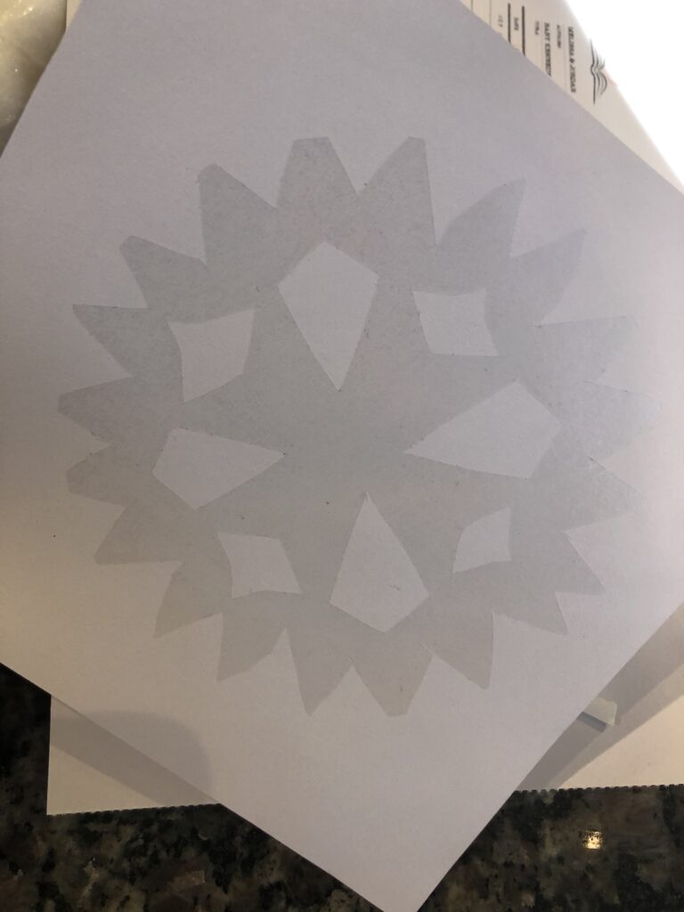 Step 1: Arrange the different shapes on your snowflake and glue them in place.