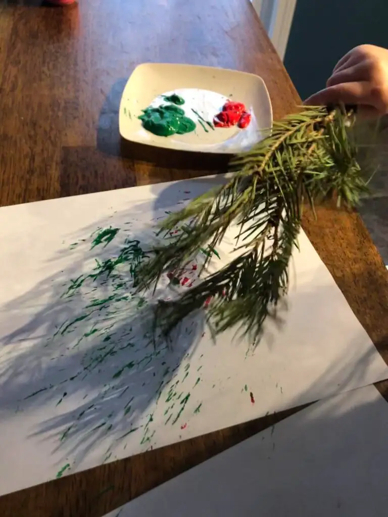 Dip the branches in paint and press or sweep them across the paper to make beautiful patterns. It’s another simple activity that gives really cool results and lets kids explore texture and nature at the same time.