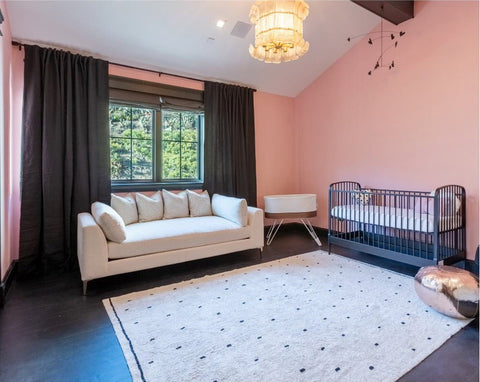 While a sleek and sophisticated look works well, remember this is still a nursery. It is completely okay to highlight details that make the room feel playful and magical for your little one. These parents added whimsy with a floating rainbow and a bold rug that instantly shows a baby lives here.