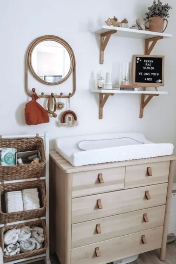 Think vertical and clever when arranging the room. A crib with built-in storage, a dresser that doubles as a changing table, or shelves mounted on the wall all help save space. These solutions keep the room open while still giving you everything you need.
