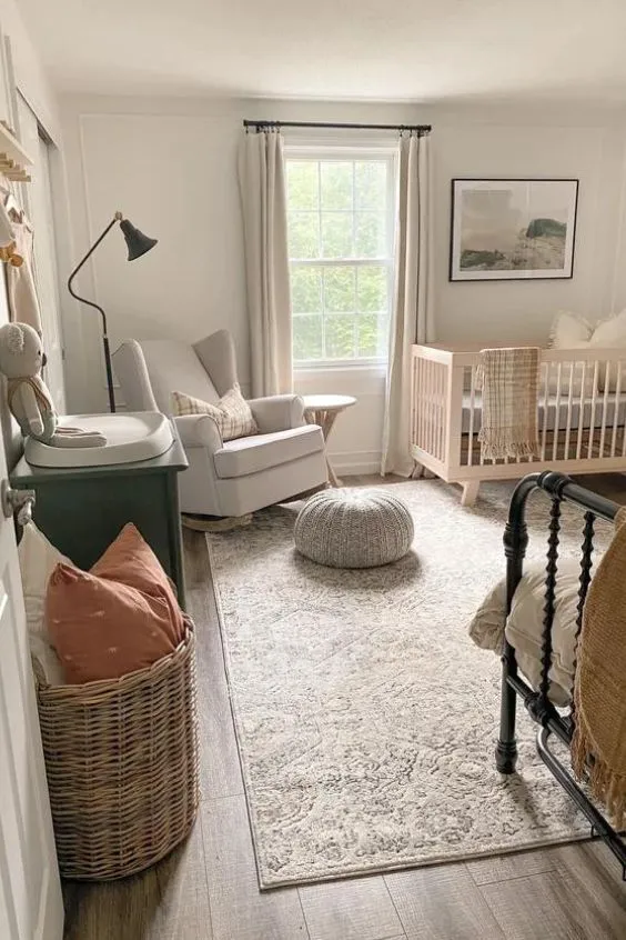 A portable crib is a practical choice for a nursery-guest room. With wheels or a lightweight frame, it can easily be moved from room to room when needed. When guests are staying over, simply roll the crib out to free up space, then bring it back once the room is yours again. This flexibility keeps the nursery comfortable while making guest visits smooth.