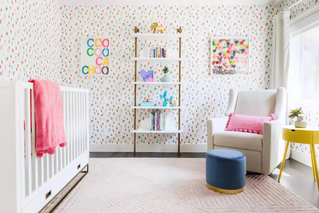 When you can’t decide on just one color, why not include them all? Multicolored confetti wallpaper instantly livens up the space and gives you endless accent options to play with. As time goes on, you can easily switch up furniture, rugs, or art without having to redo the entire room.