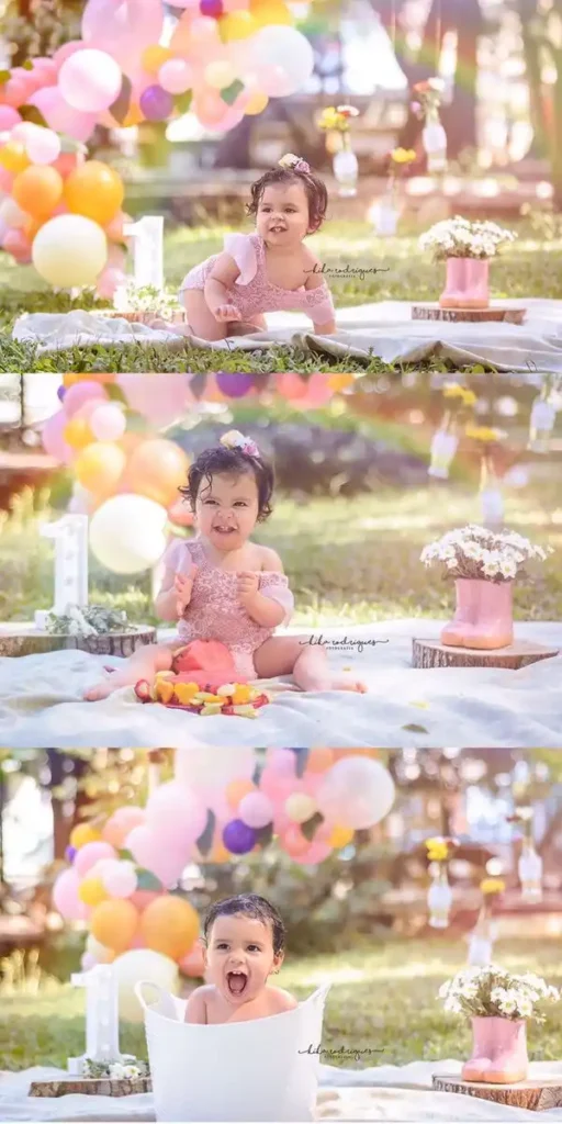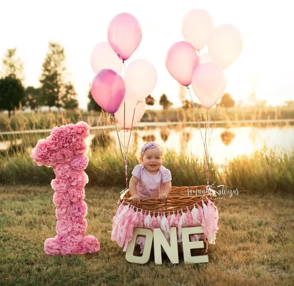 The soft sunlight during the golden hour makes the whole setting glow beautifully. It’s a sweet and personal way to celebrate your baby’s first year.