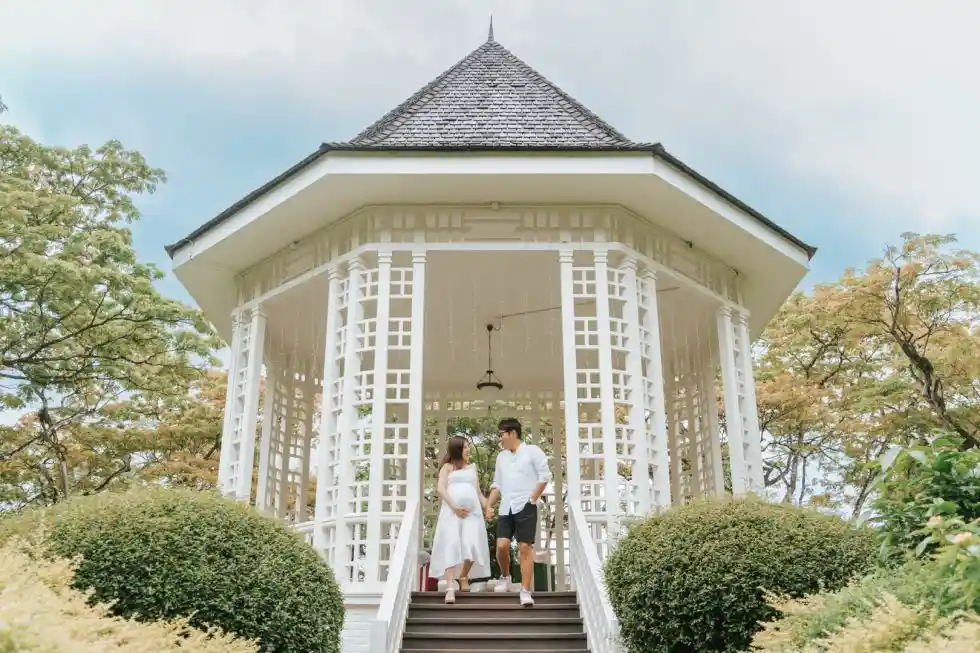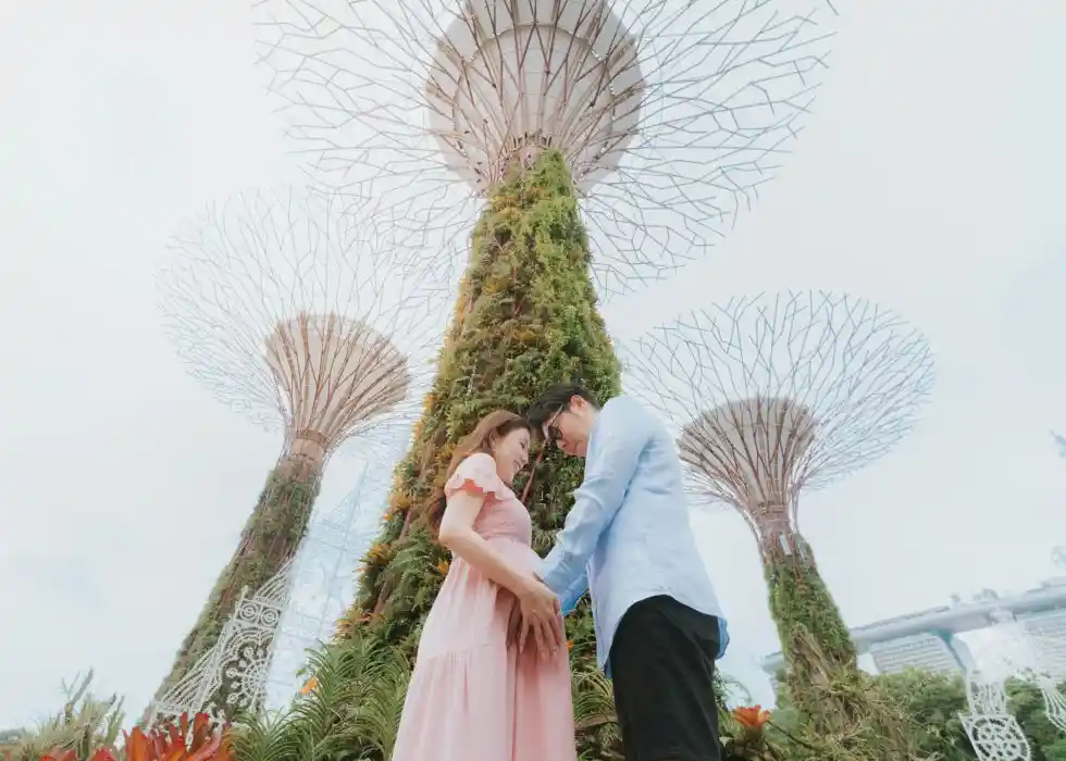 Standing under unique trees or creative structures adds a magical touch to maternity photos. It brings a blend of modern beauty and natural charm, making your pictures look both artistic and full of wonder.