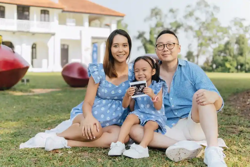 Outdoor family shoots always bring happy energy to maternity photos. Sitting together on a blanket, enjoying soft sunlight, and letting your little one hold the ultrasound photo creates a moment filled with laughter, love, and the joy of growing your family.