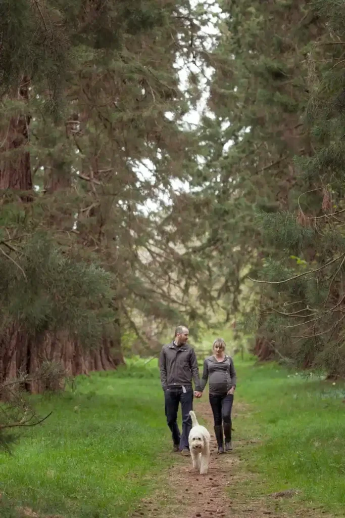 Including your pet adds warmth and personality to your maternity shoot. Walking hand in hand through the woods with your dog happily leading the way shows pure joy and togetherness.
