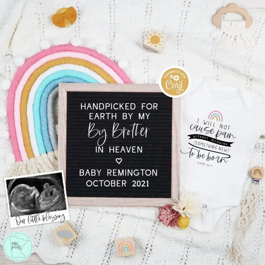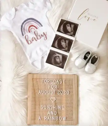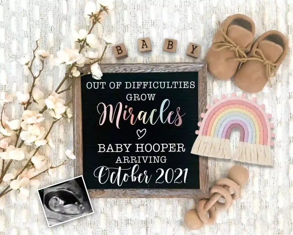 A letter board announcement is a timeless and creative way to share your happy news. Grab a letter board or chalkboard and write a sweet message about your rainbow baby.