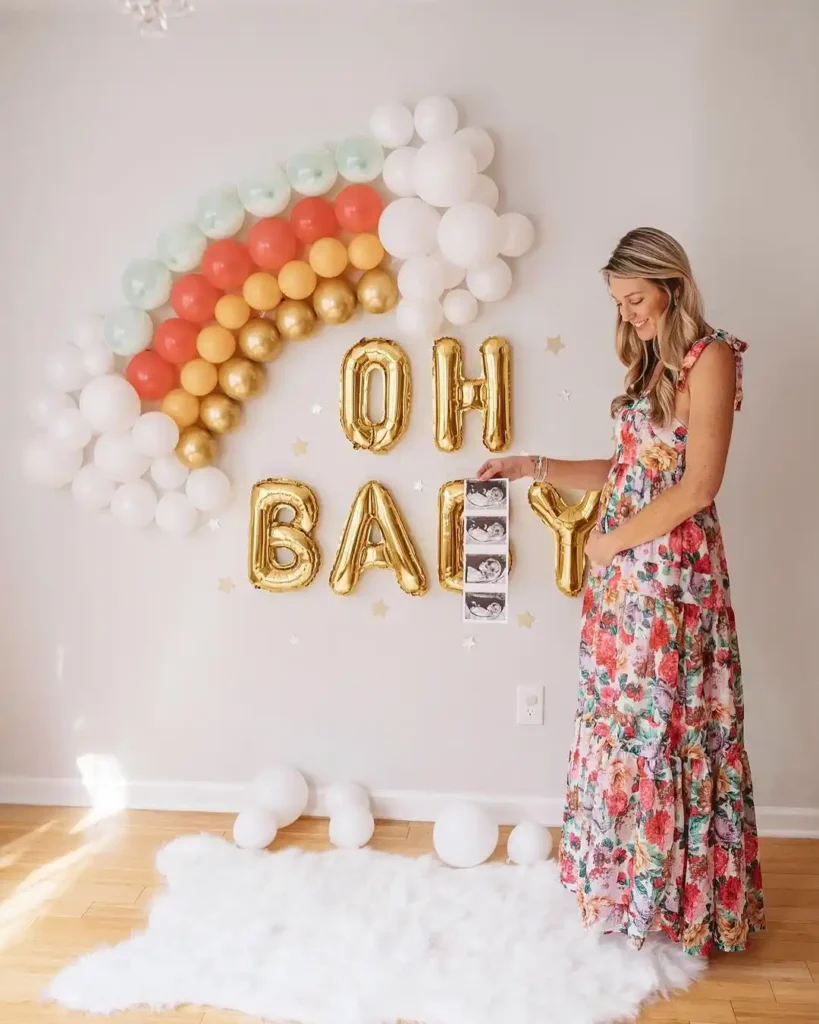 At Home Balloon Backdrop Rainbow Baby Announcement