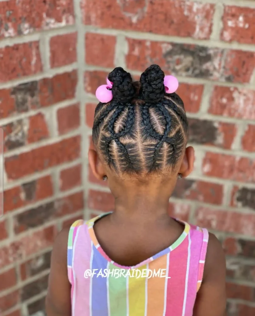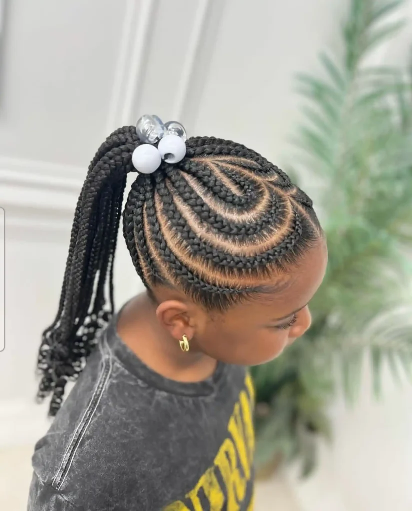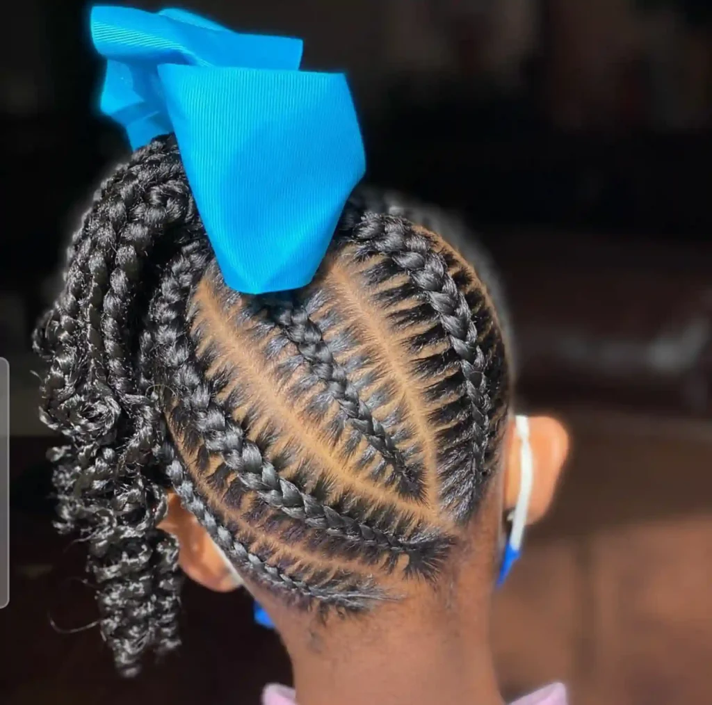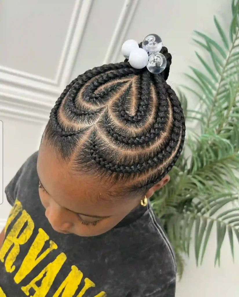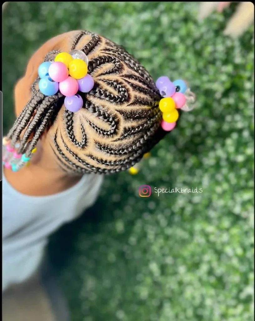Flower-inspired designs have never looked prettier than they do in this lovely braided hairstyle. The petal-shaped cornrows add a sweet and playful touch that looks stunning on any child’s hair.