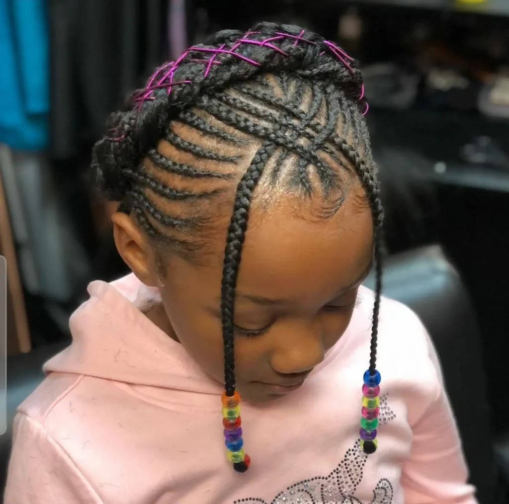 Ideal for medium to thick hair, this hairstyle is easy to maintain with little daily effort. It suits different face shapes, protects the hair from breakage, and helps promote growth, making it a wonderful option for active kids.