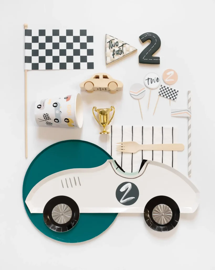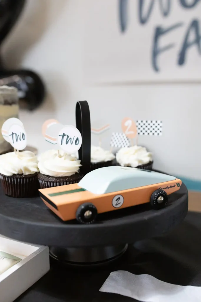 For kids who love cars, trucks, and anything with wheels, a racecar-themed second birthday is always a hit. There are so many cute car decorations available now, which makes styling the party feel easy and stress-free. From racetrack details to bold colors, this theme comes together quickly and looks great in photos.