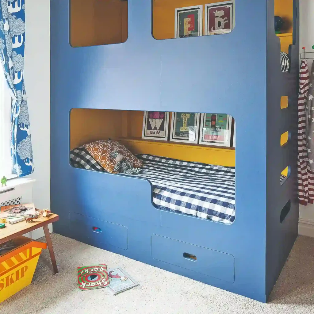 When floor space is limited, look up. Making good use of the walls can make a big difference, especially for shared rooms or those with regular sleepovers.