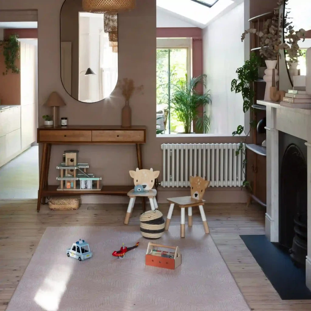 Add playful details like a colorful rug to bring in personality and keep the space cheerful and inviting.