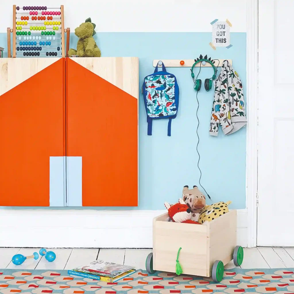 If you’ve ever organized a nursery, you already know how important smart storage can be. The same idea applies to a child’s small bedroom. Focus on toy storage and bookshelves that can grow with your child.
