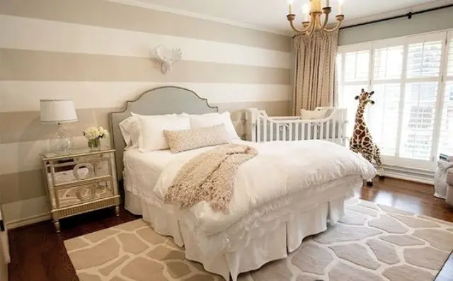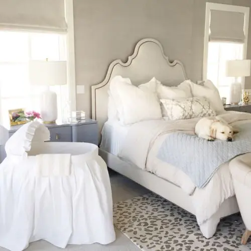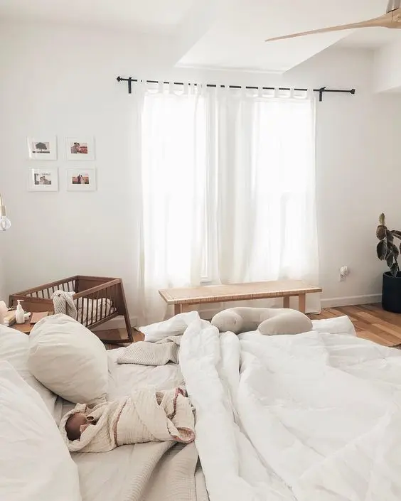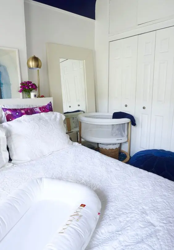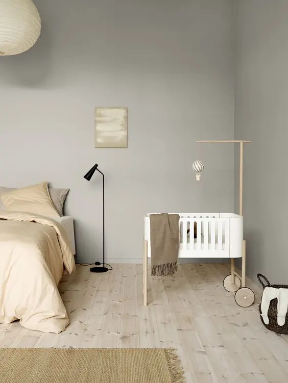 A bassinet with a fabric skirt feels timeless and elegant, blending perfectly into traditional bedroom decor. It’s soft, subtle, and a lovely way to keep baby close without overwhelming the space.