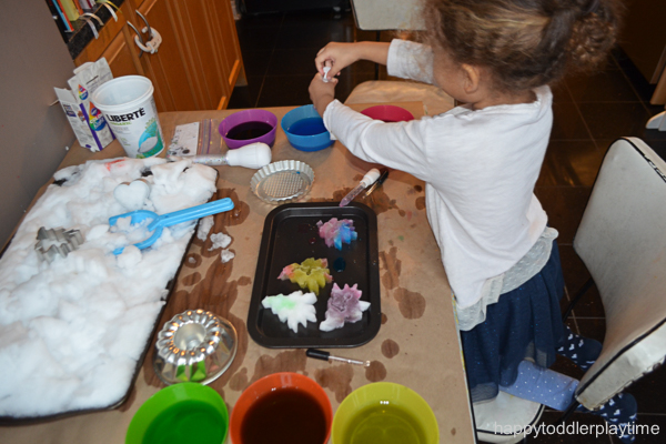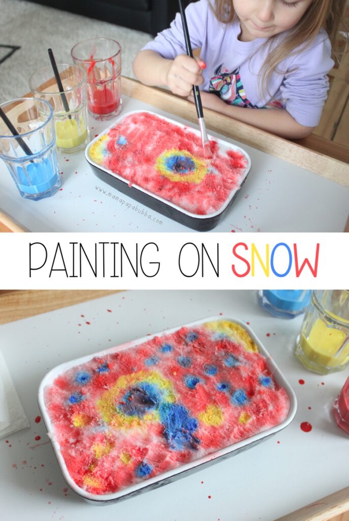 When the weather’s too cold for outdoor play, bring the snow fun inside. Painting snow is such an easy way to keep little ones entertained on a chilly day.