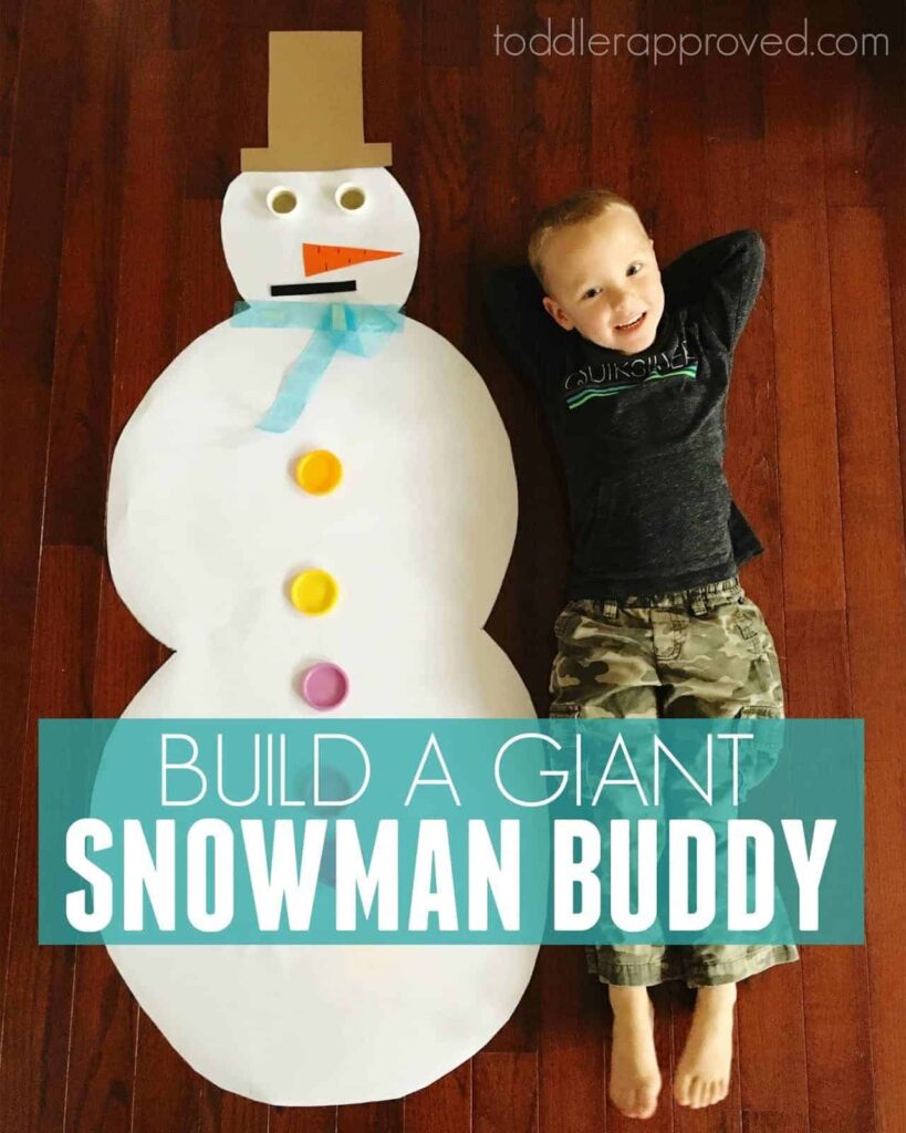 If your kids love snowmen, they’ll have so much fun making a giant snowman buddy. This project is great for a winter craft day and brings out lots of giggles and creativity.