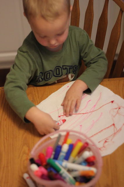 Start by coloring on paper towels with markers or dropping liquid watercolors over them. Add a little water using a turkey baster or dropper to help the colors mix and spread. Once the towels are covered in color, let them dry completely.