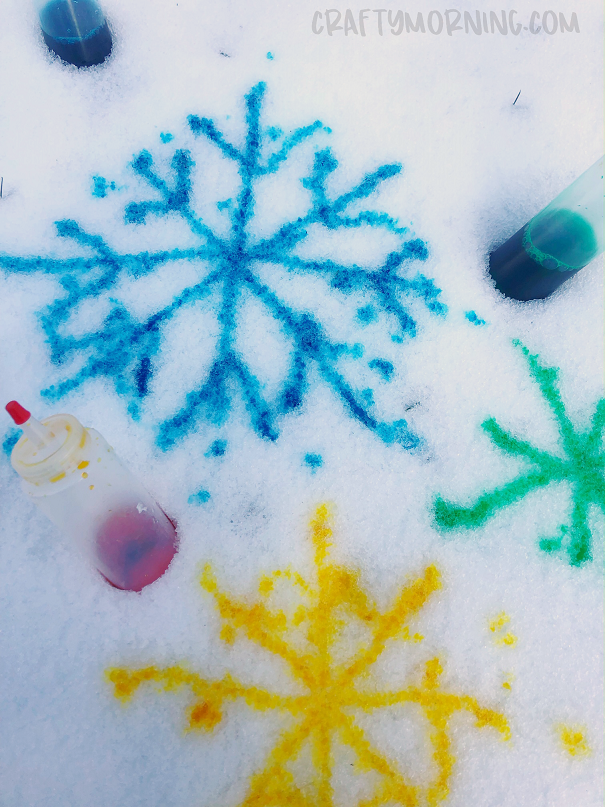 Scoop some fresh snow into a storage bin and set it on the kitchen floor with a towel underneath. Fill a few small bowls with water and add drops of food coloring. Hand your kids some paintbrushes and let them create colorful snow art right at home.