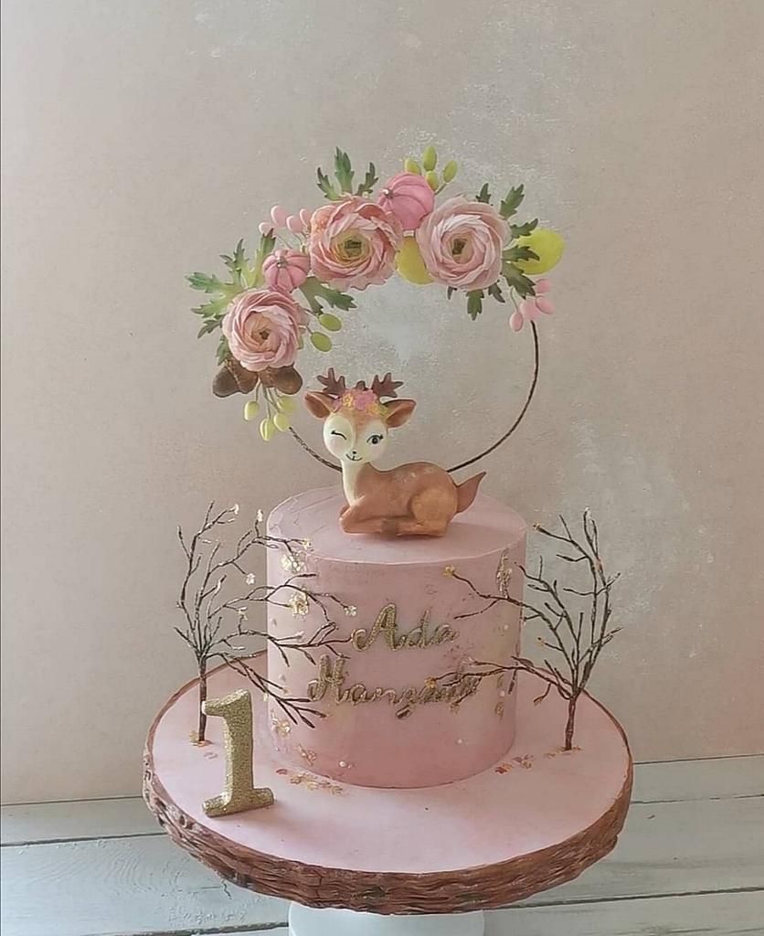 This cake feels soft and dreamy, perfect for a spring first birthday. The little deer on top adds a sweet woodland touch that looks calm and friendly. I love how the pastel pink color keeps the design gentle and baby-friendly. This style works great if you want something elegant but still playful.