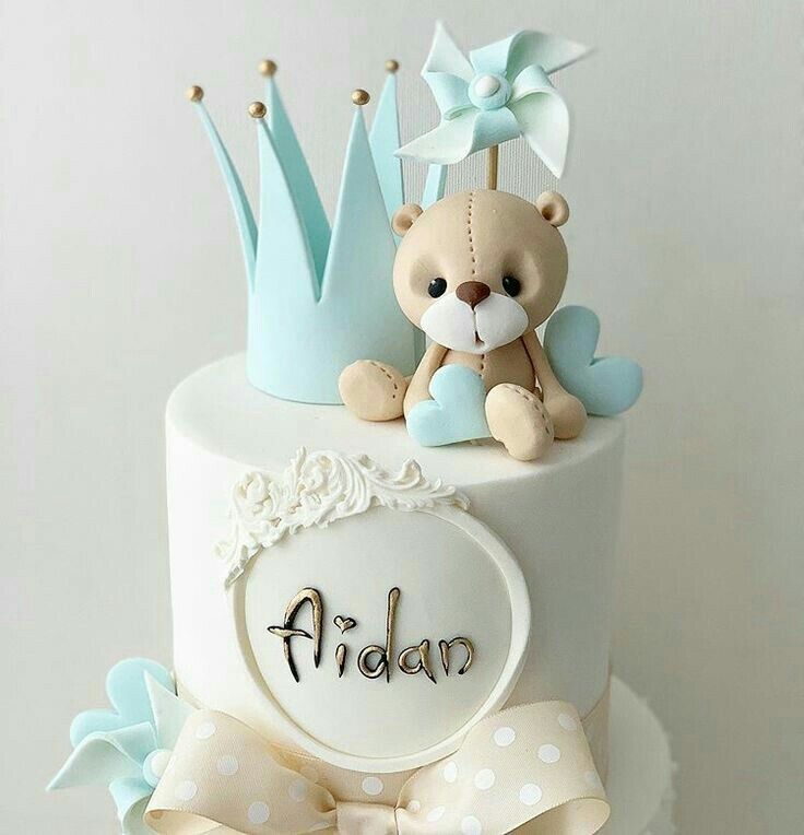 This cake feels royal but is still baby-friendly. The little teddy with a crown adds a cute and gentle charm. I love how the soft blue and white colors keep it fresh for spring. It is a nice pick if you want something elegant and sweet.