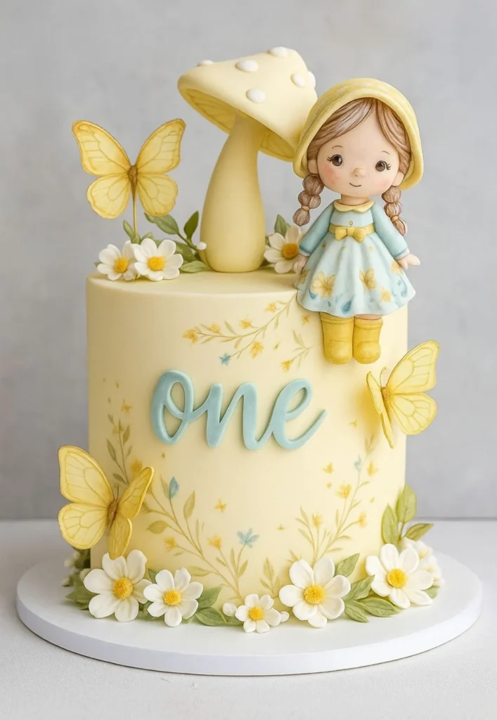 This cake feels soft, dreamy, and full of spring charm. The little girl topper and butterflies make it look gentle and sweet. I find this style great for parents who want a delicate and pretty cake. The light yellow shade adds a fresh and happy feel.