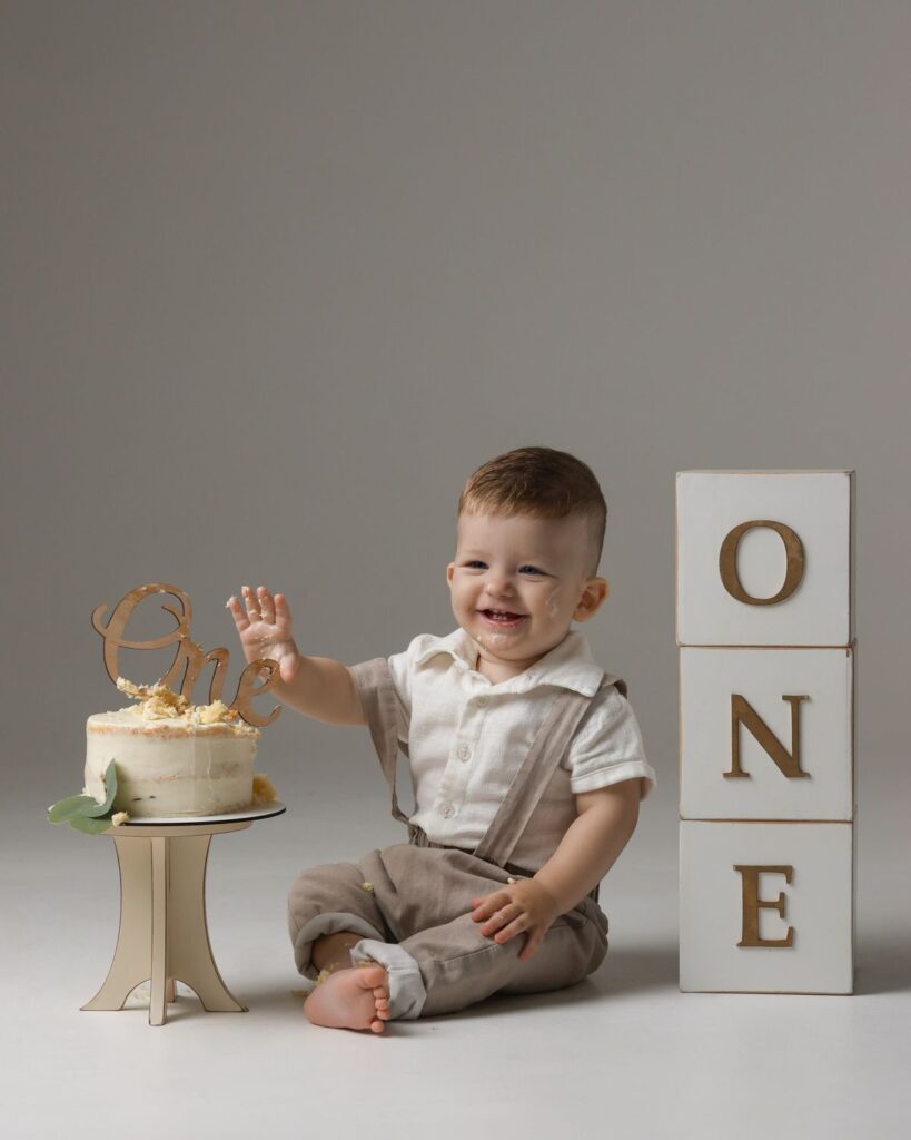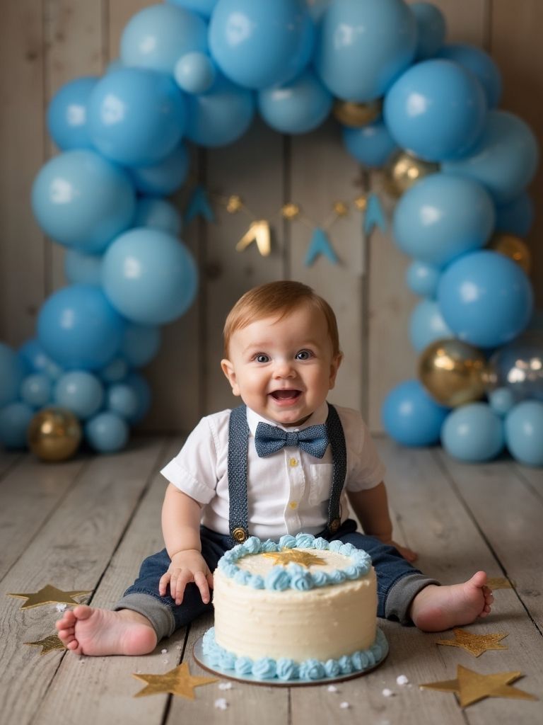 This style is made for happy, messy moments. The suspenders and bow tie keep the outfit looking cute even after the cake comes out. I have seen this type of outfit photographed beautifully from start to finish. It is perfect if you plan a cake smash or photo session.