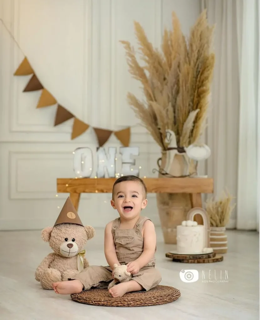 This look is simple, neat, and perfect for a spring setup. The white shirt and soft shorts feel light and comfortable for a one-year-old. I like outfits like this because they match almost any party theme. It is a safe and stylish choice for photos and family gatherings.
