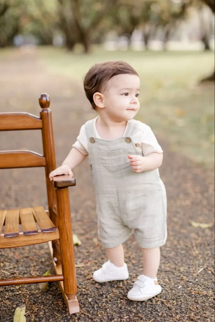 This is a perfect choice for a spring birthday spent outdoors. A light shirt and comfy pants let a baby move freely while still looking put together. I have always loved outfits like this because they feel natural and relaxed. It captures real moments without trying too hard.