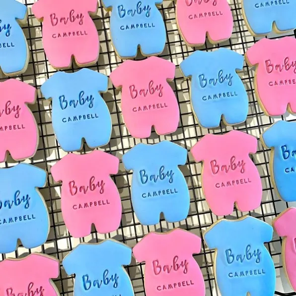 Add a personal touch to your dessert table with custom cookies designed just for your celebration. A sweet idea is to decorate them with tiny onesies, baby footprints, or family names in shades of pink and blue. They look adorable on display and make great take-home treats for guests, too.
