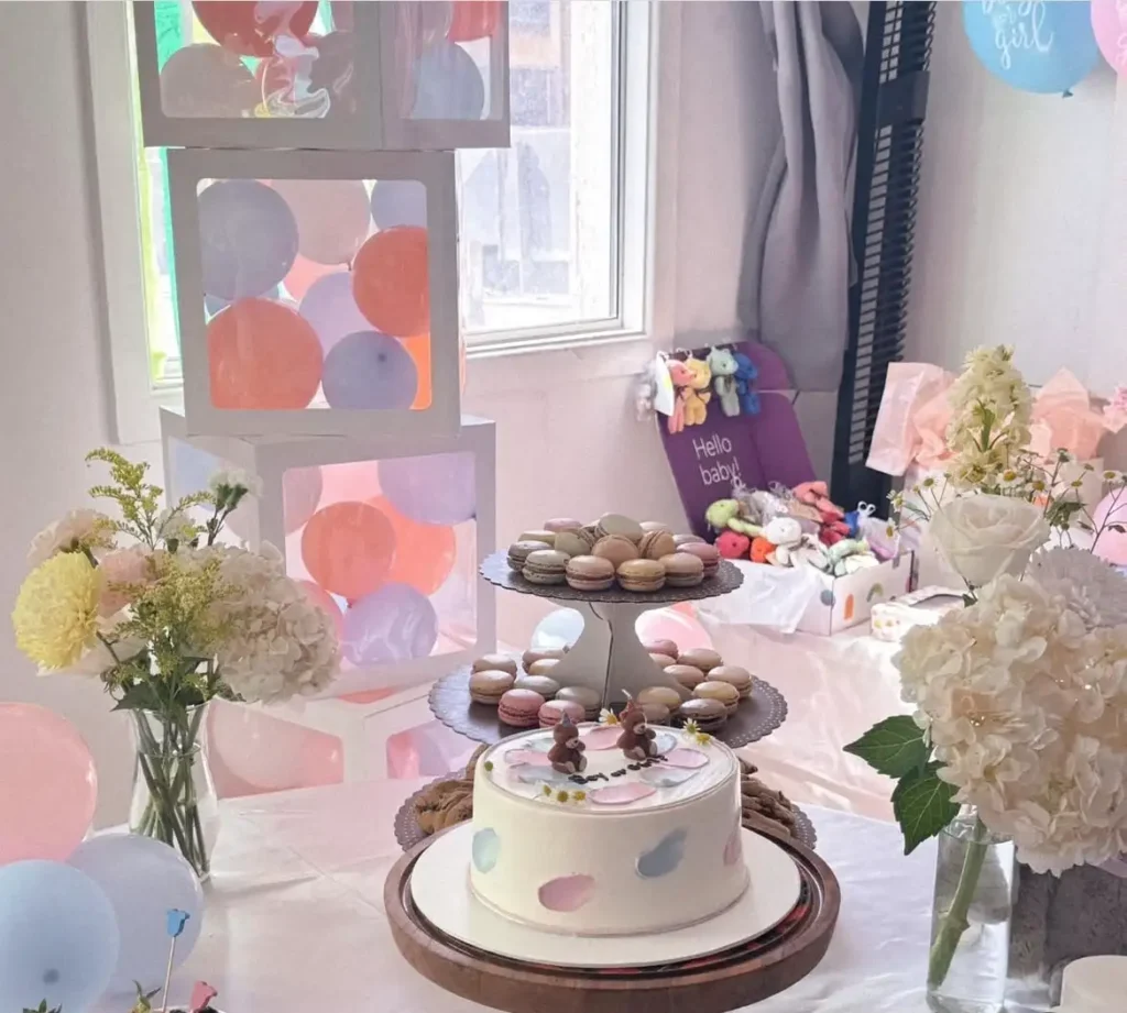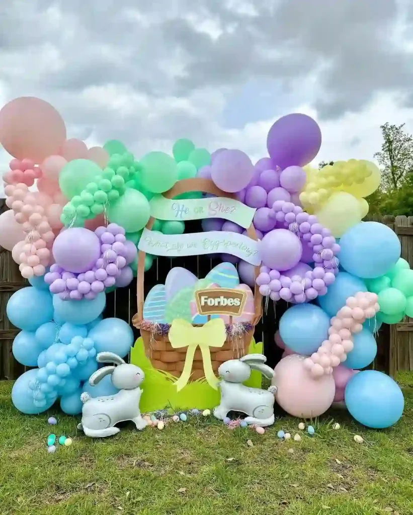 A gender reveal box filled with balloons is another classic idea that fits spring celebrations beautifully. Decorate a large box with pastel colors and when it’s time, open the lid to release a cloud of pink or blue balloons.