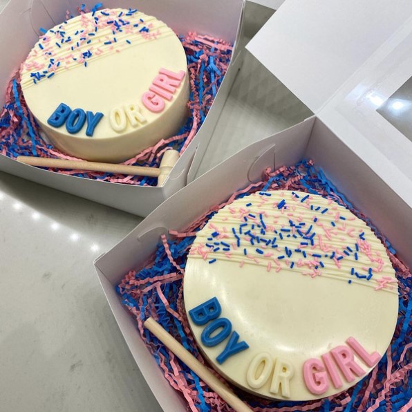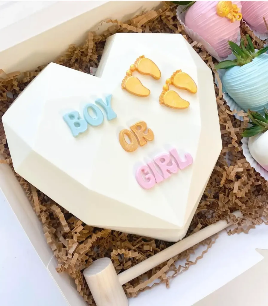 For a dramatic reveal moment, try chocolate smash boxes filled with blue or pink candies. Have the parents-to-be break them open to reveal the surprise inside. It’s interactive, fun, and makes for a photo-worthy moment everyone will remember.