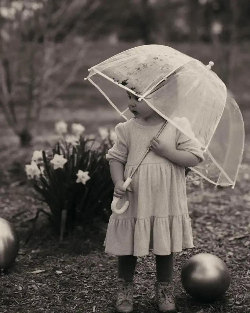 Let colored balloons rain down on your little one for a sweet and creative photoshoot idea. Start with black-and-white photos and then switch to color when the balloons fall to reveal the surprise. It’s a cute, artistic way to share the big moment and get beautiful pictures too.