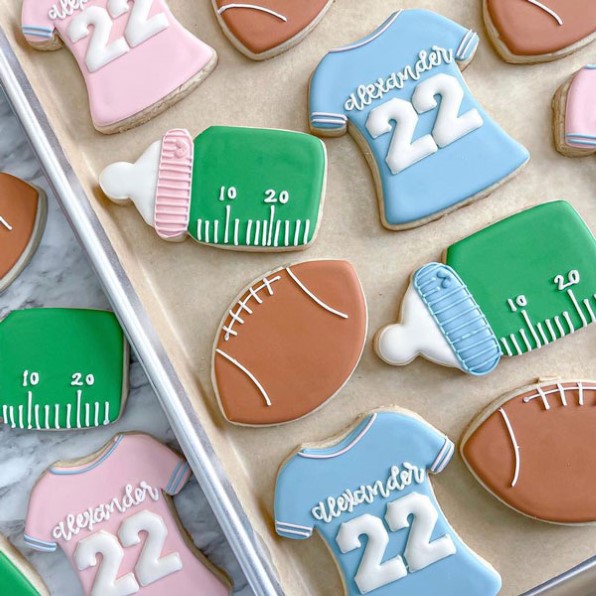 For a fun twist, tie your cookies to your party theme. A sports-inspired reveal? Try football cookies decorated with blue and pink jerseys. These themed treats add personality to your spread and make the moment even more memorable.