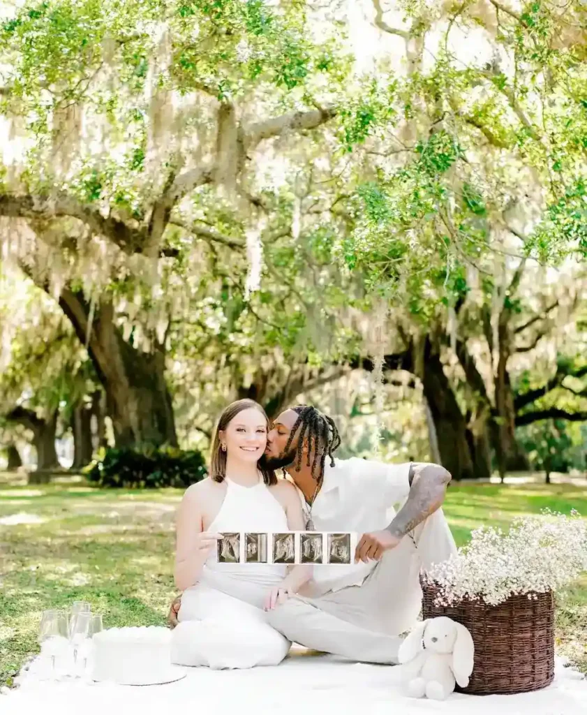 Enjoy a cozy picnic with your partner and celebrate with a custom-made gender reveal cake. Add ultrasound photos, soft toys, and floral touches for a picture-perfect setup. This simple idea blends relaxation with celebration, making it ideal for a warm spring day outdoors.