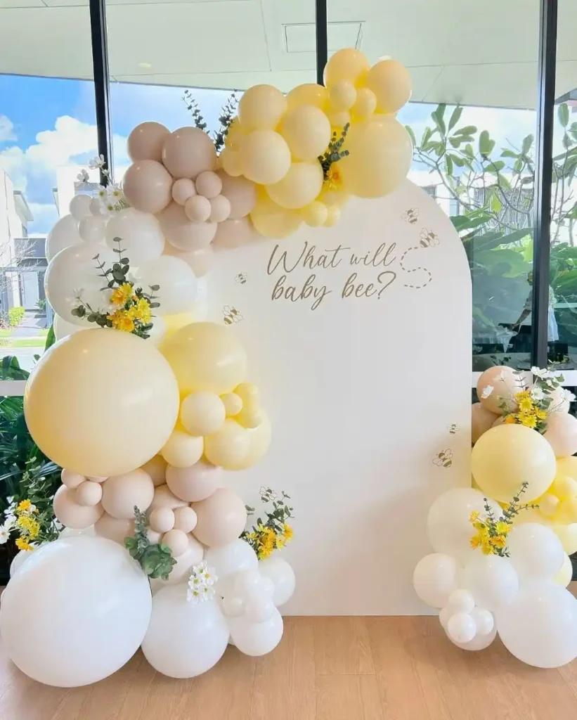 The “What Will Baby Bee” theme is adorable for spring. Think bees, honeycombs, and golden touches paired with pastels. Decorate with fresh flowers and buzzing details for a sweet theme that captures the season’s warmth and playfulness.