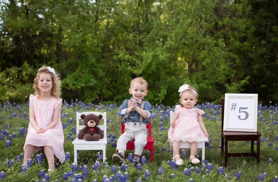 A flower field filled with bright bluebonnets sets the sweetest scene for a sibling pregnancy reveal. Imagine little chairs nestled in the blooms and your family smiling together in the sunshine. It’s a charming and natural way to show off your happy news.