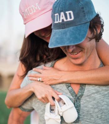 If your pregnancy announcement happens to fall during baseball season, why not let your ball caps do the talking? Grab your partner’s favorite team gear, set up a cute shot, and announce that your family lineup is growing.