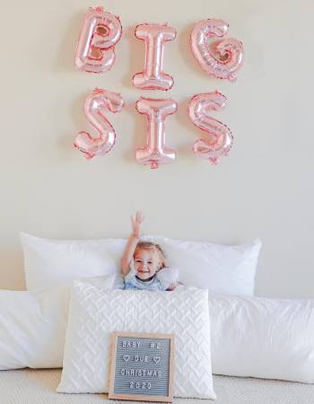 If there’s a big brother or sister in the house, let them take the spotlight. Bright balloons, sunshine, and a happy grin make this setup shine. It’s a sweet way to include your little one and share the excitement of becoming a big sibling.