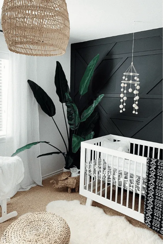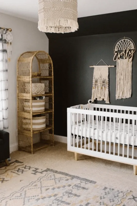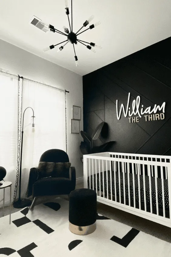 You do not have to commit to large black pieces to get the look. Small touches like a mobile, lamp, or picture frames in black can tie the space together beautifully. These little details make the design feel cohesive without overwhelming the room.