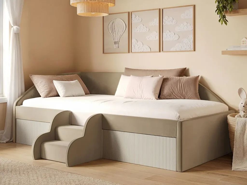The neutral color palette creates a calming space that still feels playful. It’s ideal for growing kids who love having their own comfy spot to relax, read, or nap.