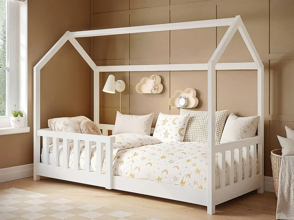 Give your little one their own cozy “home” with this adorable house bed featuring walls, a window, and a roof. It’s a playful setup that makes bedtime exciting and helps kids feel independent.