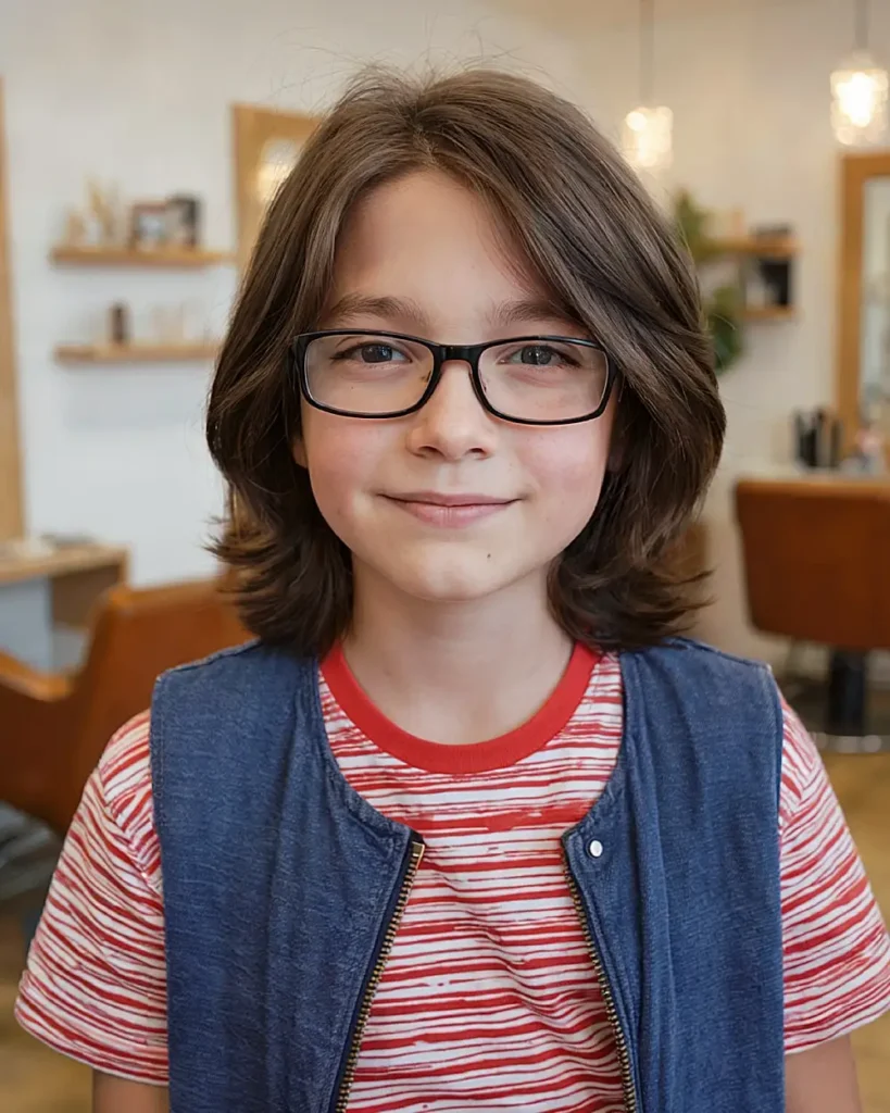 Light and airy, this long, layered cut removes bulk while keeping plenty of length. It’s a great choice for boys with medium to thick hair who want natural movement without heaviness.