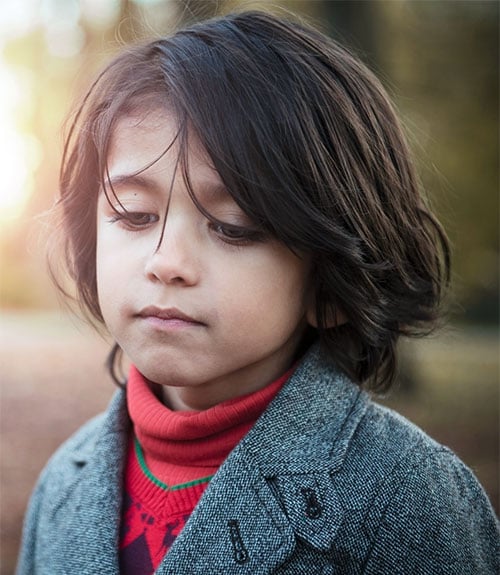 A messy, layered medium cut is perfect for boys who like a fun, carefree style that shows off their playful side. The layered top lets the hair fall naturally without much effort.