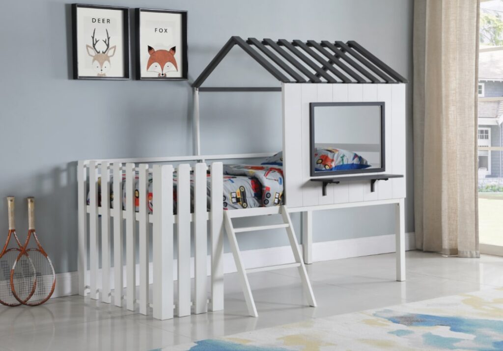 For example, a triple bunk bed works well for two siblings and an extra guest. Both bunk and loft beds also make it easy to build cozy blanket forts.